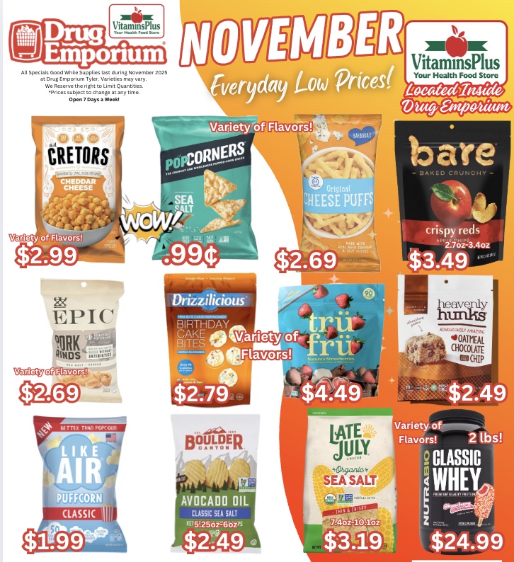 Our Tyler store has been in business since 1995, proudly serving the health and wellness needs of the Rose Capital of the World and surrounding areas. Providing an exceptional customer experience is our number one priority and we take that seriously. From our diverse product selection in our Vitamins Plus department to our world-class pharmacy, we will do whatever it takes to ensure your complete satisfaction.