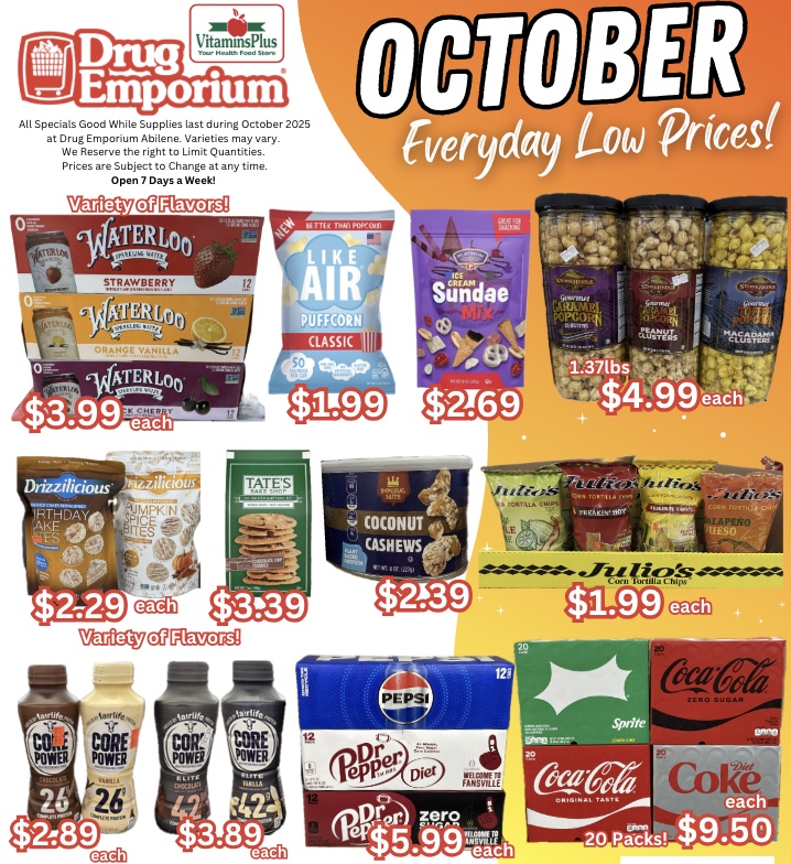 Since 1989, our Abilene location has striven to always put community first. Our friendly and knowledgeable staff specializes in great customer service and product knowledge. At Drug Emporium, we work hard to ensure we give you the best price and selection in town. Come stop by and give us a try – you’ll be glad you did.
